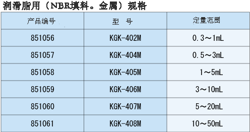 本系統(tǒng),通過空氣信號,只用通過連接自定量閥和發(fā)送空氣信號的通氣閥,設計簡單的適合使用的系統(tǒng).并且裝置小型輕巧,也容易裝在其他裝置中.請使用操作性好的手動閥,腳踏閥,另外,如果使用了通用電磁閥,也可以采用電氣控制方式.請根據潤滑脂(KGK-402M~408M)和